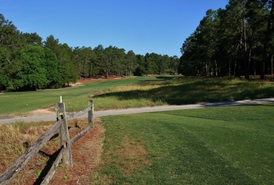 | Strategy is demanded at Pine Needles on all shots. It may look wide open off the tee, but if you want the best angle into the green, you'd better challenge the fairway bunker. Here, the par four 11th hole. |
