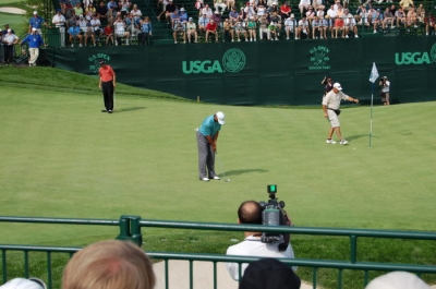 The ‘alternative’ viewing strategy (favored by the couch potato, sedentary type) is to find your favorite hole, stake out a spot and lay claim for the entire day. Though I wouldn’t exactly include myself in the latter group in everyday life, I think it’s the best way at a big event. One potential problem -- the back of a US Open ticket says that seats may not be saved. Yeah right, and Phil Mickelson didn’t really double bogey the 72nd hole of the US Open, it was just a bad dream.