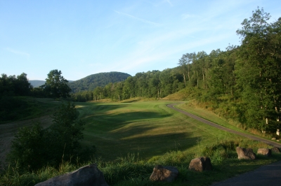 | Beautiful moutain scenery is everywhere at the Raven, but here, it's looking back from behind the 11th green. |