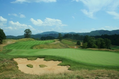 Ireland continues, “Consistent with the natural feel of the design the bunkers appear to be true ‘blowouts,’ where wind and erosion created the gouges over years of exposure, even to the extent that he selected a medium-brown sand because white sand is not native to the Southwest Virginia region.”